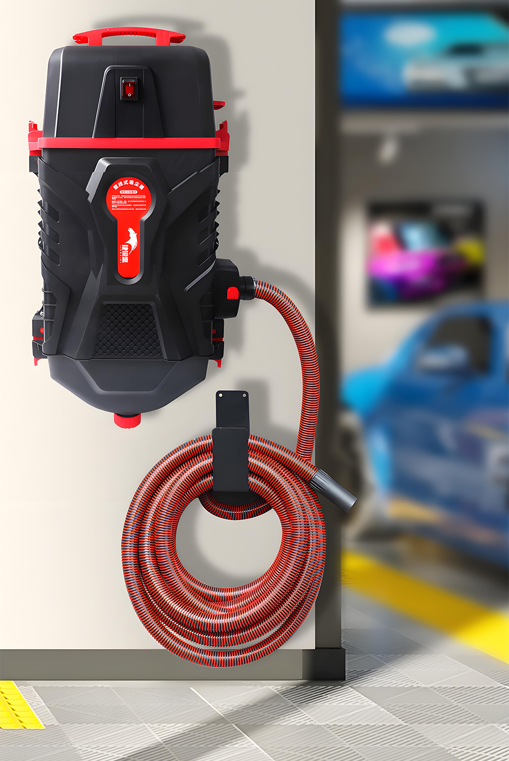 This wall-mounted automotive workshop vacuum system is designed for professional garages and auto repair shops, delivering precise suction for engine bay cleaning, mechanical debris removal, and workshop maintenance. Its fixed wall installation keeps workspaces organized and efficient.