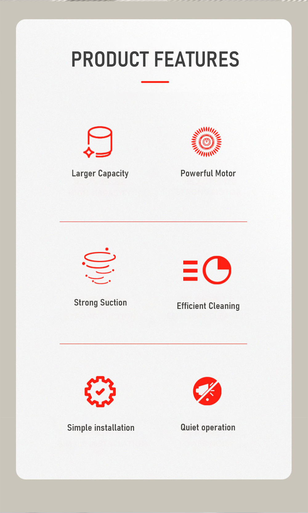• Strong suction for engine bay debris removal
