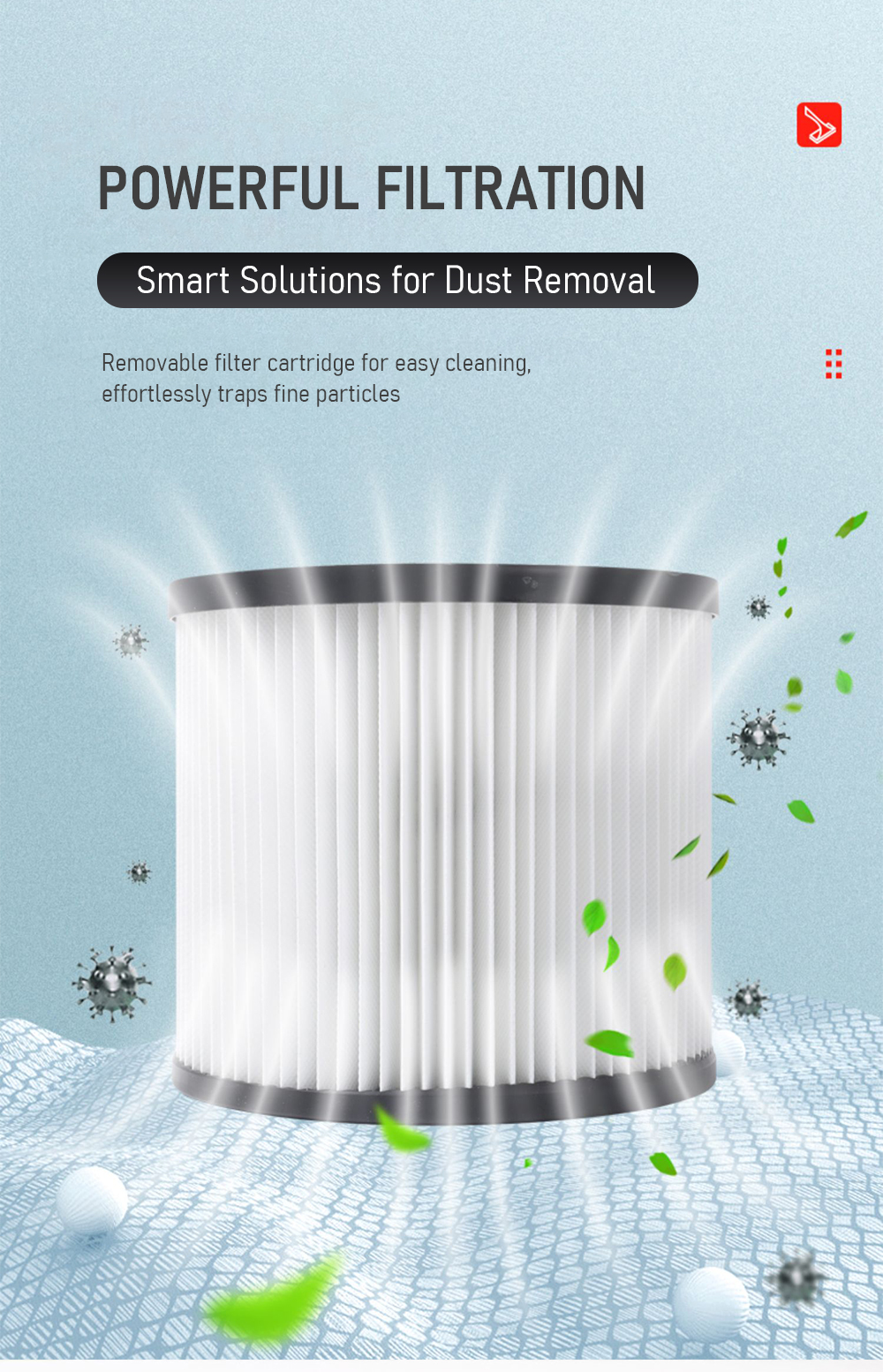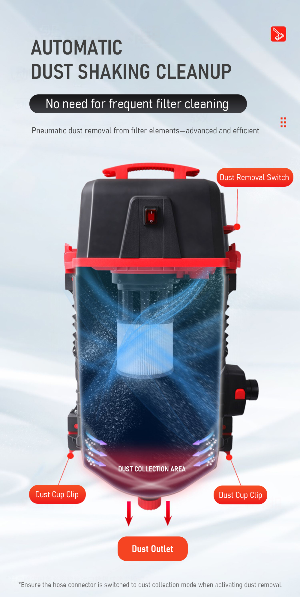 • Optimized airflow for fine mechanical debris