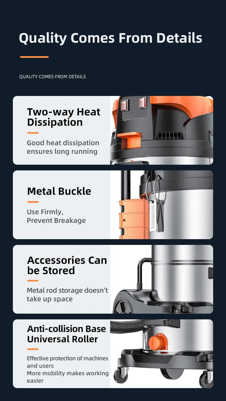 • 80 Liter Volume 220V Factory Price Professional Industrial Household Stainless Steel Vacuum Cleaners Wet and Dry Vacuum Cleaner