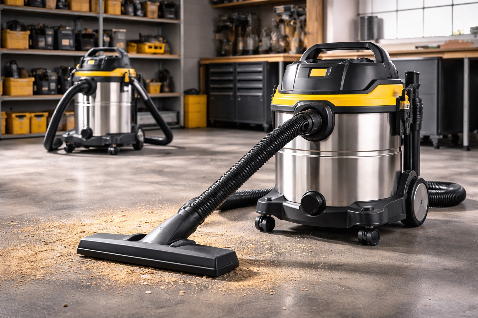 Metal dust, wood shavings, packaging debris, oil spills, and water are often present simultaneously. Wet Dry Vacuum Cleaners handle both dry and liquid waste in one system.