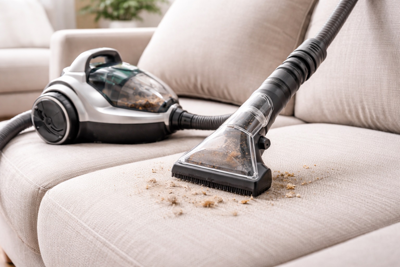 كما أن استخدام مكنسة خفيفة الوزن وسريعة (Fast Lightweight Vacuum Cleaner) يسهل تنظيف الأرائك الكبيرة.